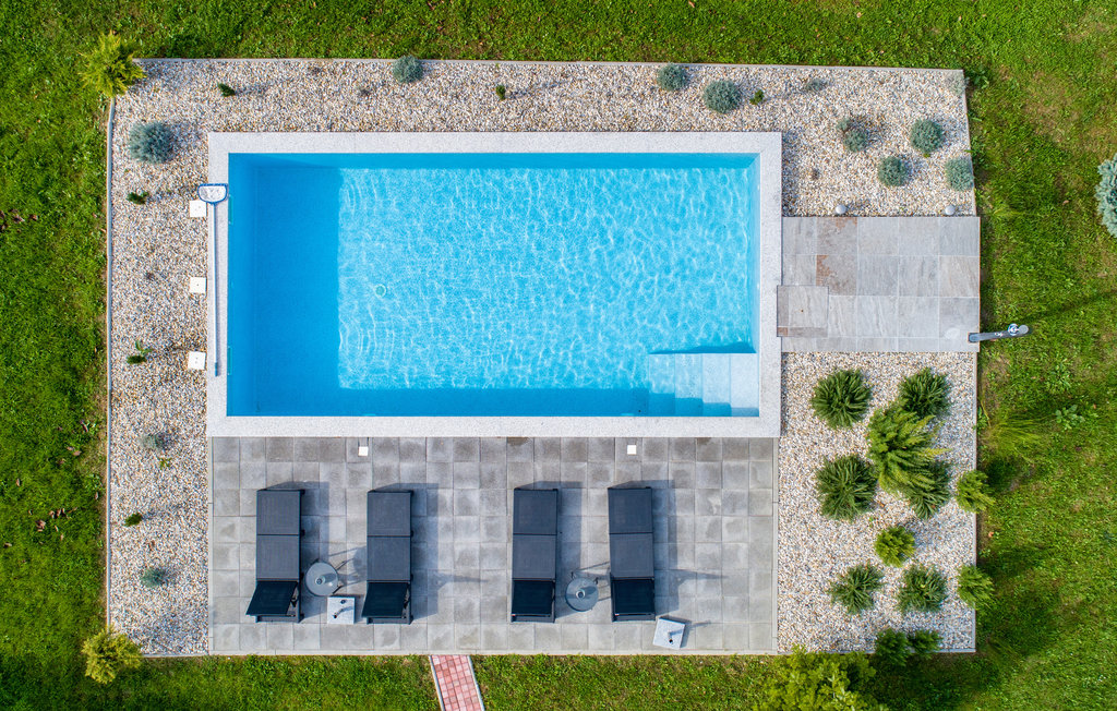 – Grijani bazen sa elektrolizom 8mx4m, tuš, ležaljke za sunčanje – u sezoni